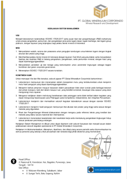 Di PT Global Mineralium Corporindo, sertifikat ISO 17025 bukan sekadar pajangan, melainkan ruh yang menjiwai setiap operasional kami. Kebijakan Mutu kami adalah peta jalan aktif untuk memastikan setiap hasil uji memiliki kualitas tertinggi. Berikut adalah bukti nyata bagaimana kami mengimplementasikan standar ini setiap hari: Kompetensi Personel Teruji Kami tidak hanya merekrut ahli, tapi juga secara […]