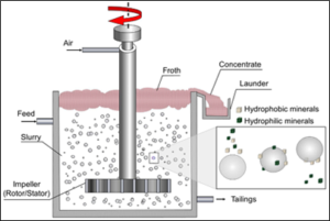 - Frother seperti methyl isobutyl carbinol (MIBC) digunakan untuk menstabilkan gelembung udara. Sementara itu, depresan juga sering ditambahkan untuk menekan flotasi mineral pengotor seperti pirit berlebih atau mineral karbonan (Klimpel, R., 1995).