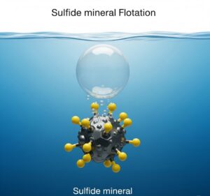 Ini adalah reagen yang paling penting. Fungsi utamanya adalah menempel pada permukaan mineral sulfida dan mengubahnya dari hidrofilik menjadi hidrofobik. Molekul kolektor memiliki “kepala” polar yang tertarik pada permukaan sulfida dan “ekor” non-polar (hidrokarbon) yang menolak air.